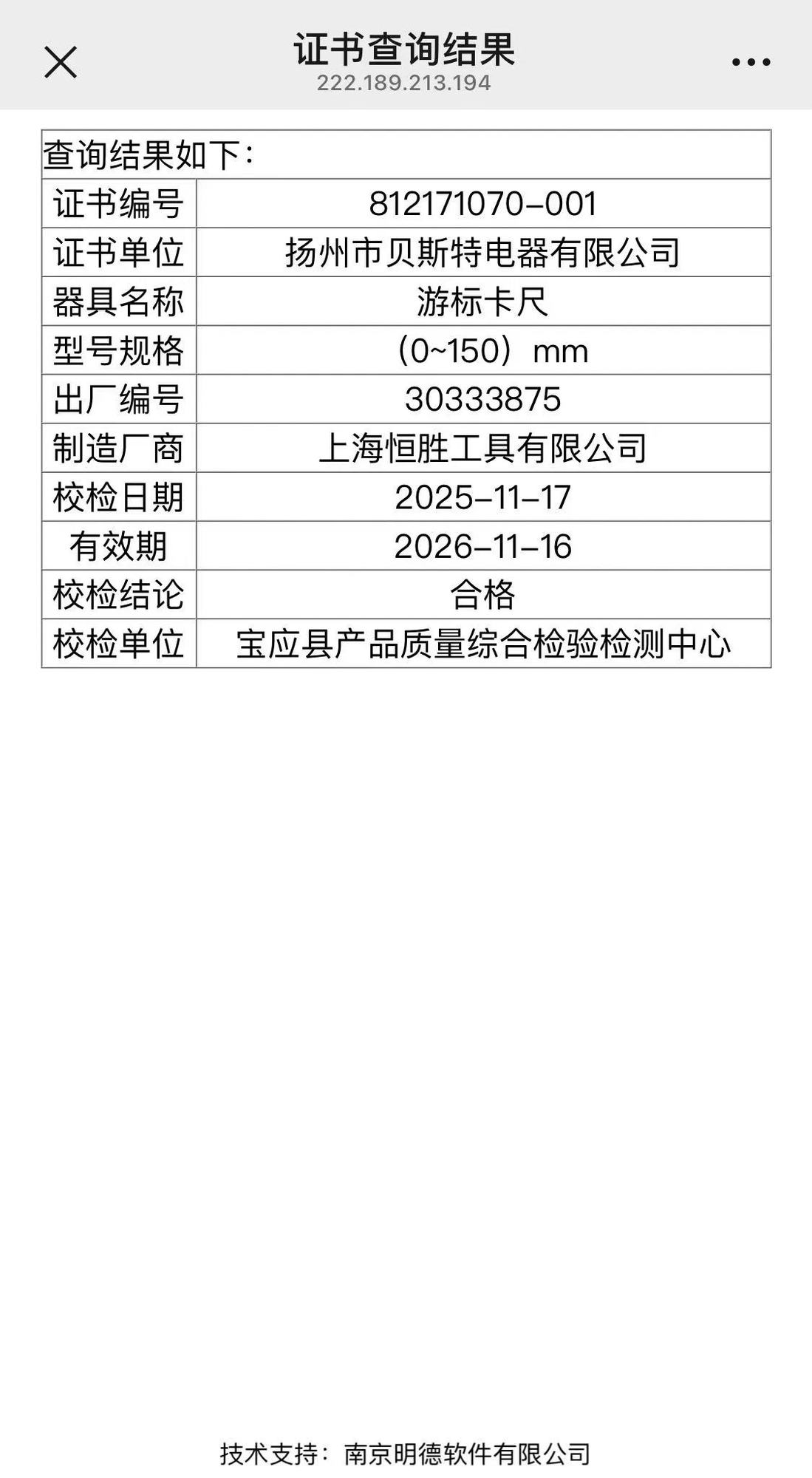 发表时间:2025-12-10 15:18 县综检中心于10月17日顺利通过法定计量技术机构能力评价与确认现场考核,并于10月31日获得扬州市市场监管局发布的《关于公布宝应县产品质量综合检验检测中心能力评价和确认结果的函》。近日,县综检中心对出具的计量检定证书、校准证书和检验报告上的机构名称由“宝应县计量测试检定所”变更为“宝应县产品质量综合检验检测中心”,并采取防伪措施,供有关部门、利益相关方和社会公众查验证书和报告的真伪。下一步,县综检中心将继续加强质量管理,遵守国家有关法律法规的规定,遵循客观独立、公平公正、诚实信用原则,承担社会责任,保证出具的证书和报告真实、客观、准确、完整,为实施计量监督管理提供技术支撑。